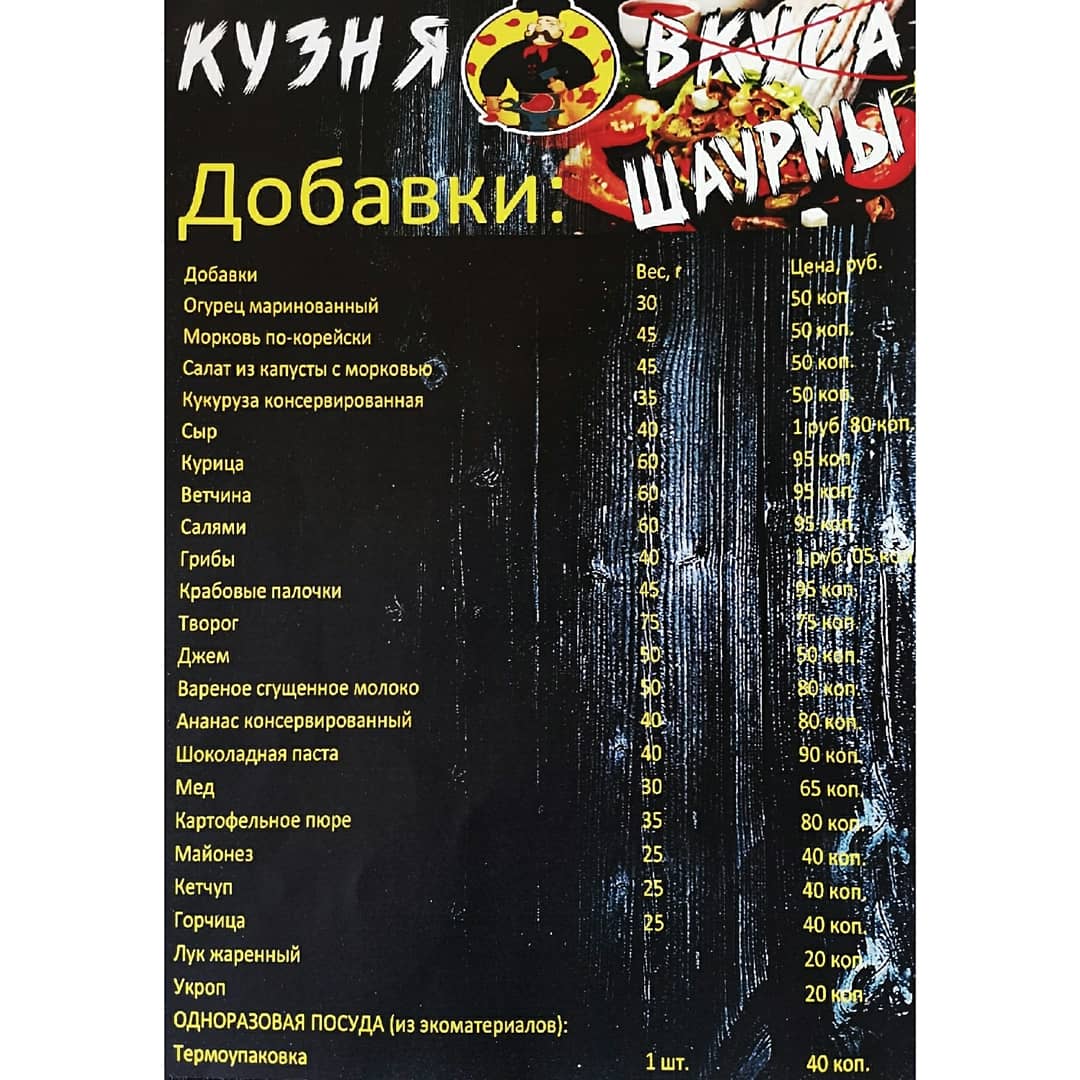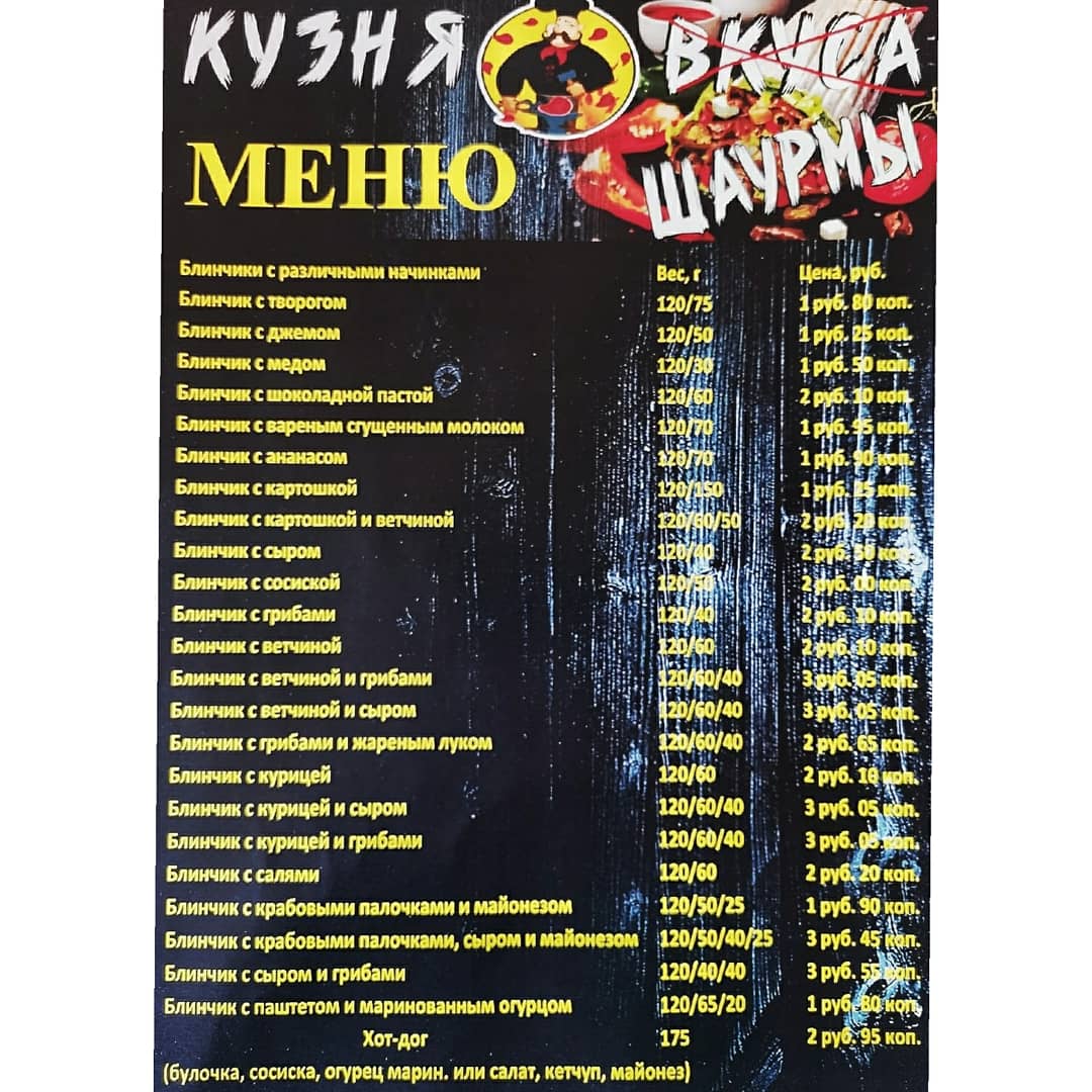 Mini-Kafe 'Kuznya Shaurmy' Menu
